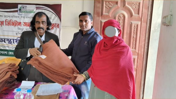 নাটোরের সিংড়া উপজেলা প্রশাসনের সহযোগিতায় এবং সিংড়া ডিজিটাল অনলাইন প্রেস ক্লাবের উদ্যোগে শীতার্ত মানুষের মাঝে কম্বল বিতরণ করা হয়েছে। রবিবার (১১ জানুয়ারি) সকালে প্রেস ক্লাবের অফিস কক্ষে স্থানীয় পর্যায়ে অসহায়