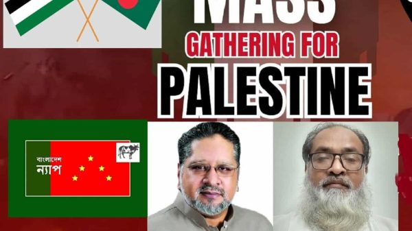 BDNAP 24-04-2025 ফিলিস্তিনের গাজায় চলমান গণহত্যার তীব্র নিন্দা ও প্রতিবাদ জানিয়ে ‘মুভমেন্ট ফর ফ্রি প্যালেস্টাইন’ উদ্যোগে আগামী শনিবার (২৬ এপ্রিল) রাজধানীর সোহরাওয়ার্দী উদ্যানে অনুষ্ঠিতব্য ‘ম্যাস গ্যাদারিং ফর প্যালেস্টাইন’ কর্মসূচির প্রতি